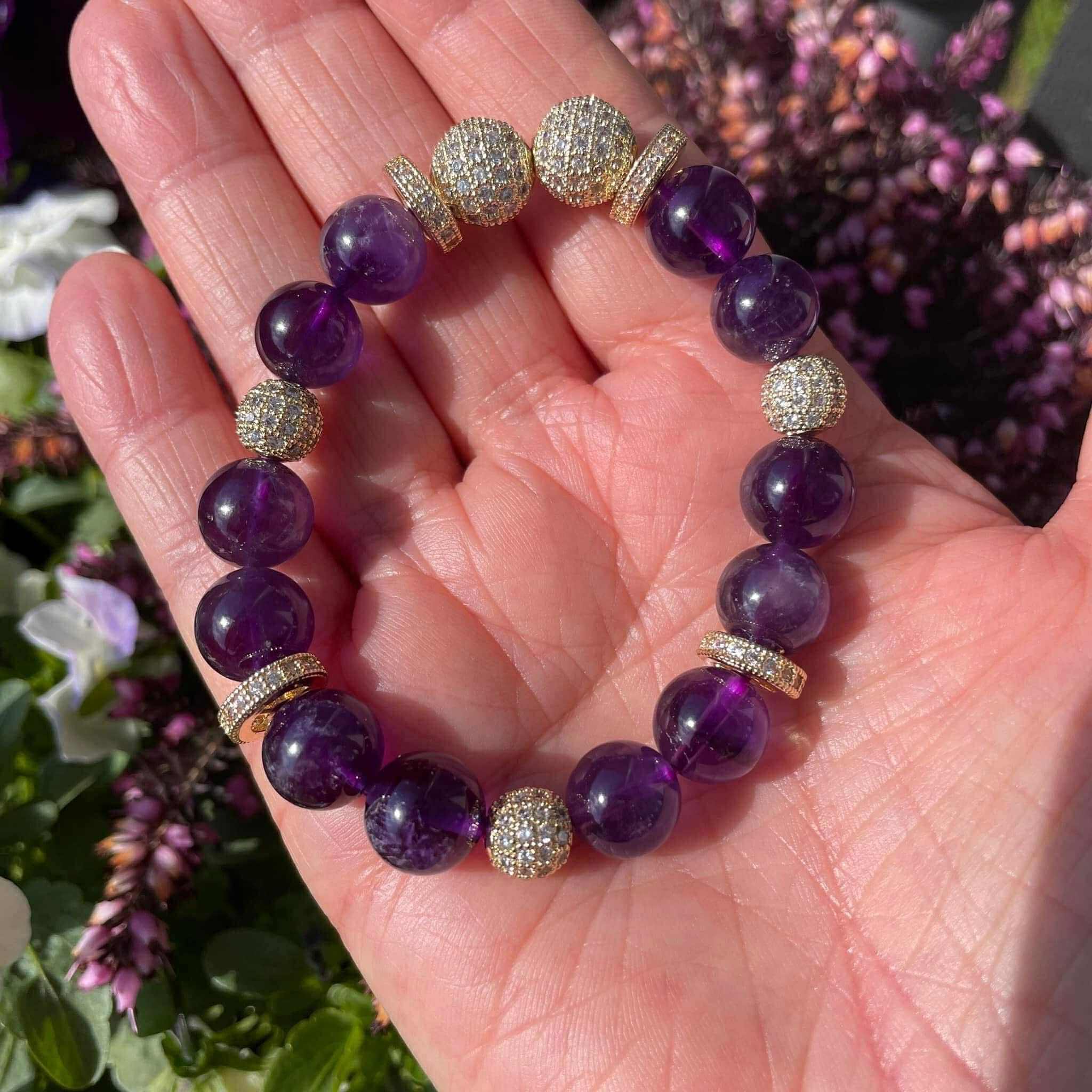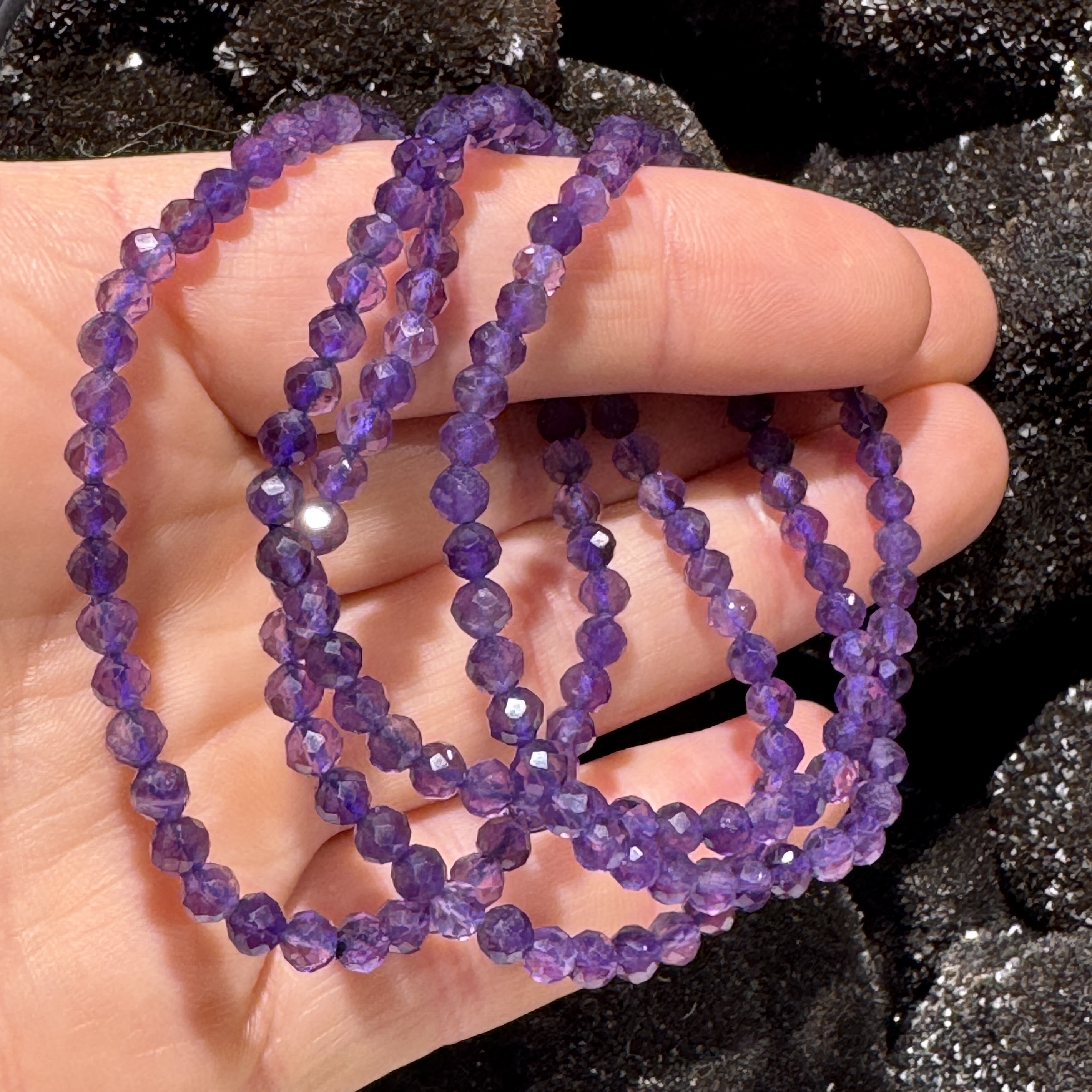 Smykkestensperler, String, Ametyst Rund Facetteret, 45 Cm/6 Mm