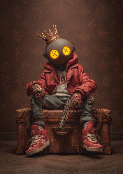 Gamer Plakat 440 - Maskeret Figur Med Krone Og Rød Jakke